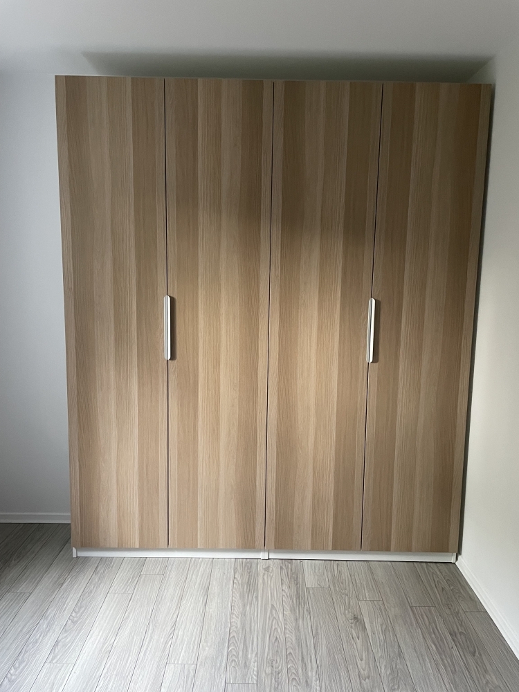 Cuisinino à procéder à la pose d'un dressing effet bois avec pas mal de rangement ! Parfait pour ranger tout vos vêtements !